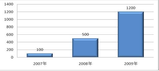 圖表12007年-2009年電力行業(yè)中高端自助終端設(shè)備數(shù)量(單位:臺(tái))