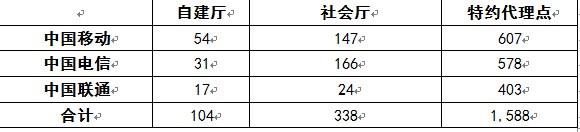 圖表2三大電信運(yùn)營(yíng)商截止2009年?duì)I業(yè)廳數(shù)量(單位:千個(gè))