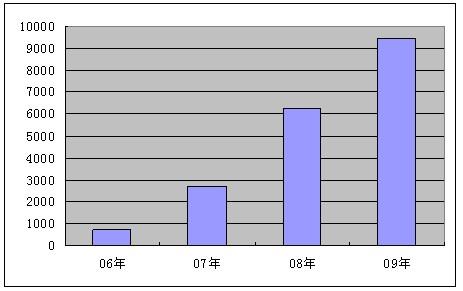 圖表3電信行業(yè)中高端自助服務(wù)終端合作運(yùn)營(yíng)設(shè)備2006年-2009年數(shù)量(單位:臺(tái))