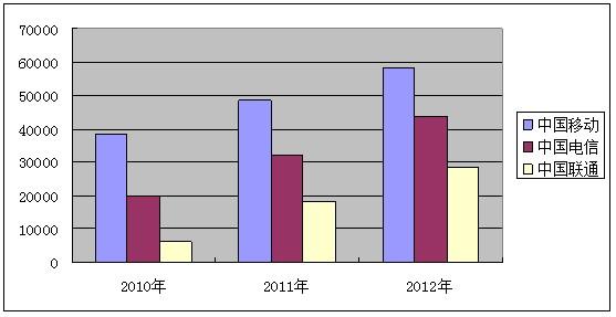 圖表5三大電信運(yùn)營(yíng)商中高端自主服務(wù)終端設(shè)備2010-2012年保有量預(yù)測(cè)
